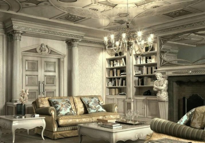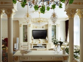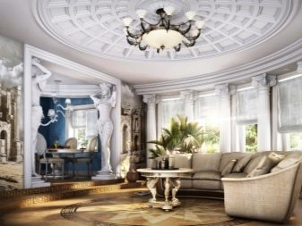 - En clàssics antics La grandesa i la noblesa són clarament visibles. Per portar només aquestes notes al saló, haureu d’instal·lar un arc, pintar els sostres. Una opció interessant seria la pintura mural en forma de frescos.