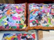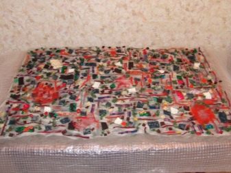 - A la peça resultant es col·loquen soltes grans de tela - es poden distribuir segons les tonalitats o no adherir-se a cap ordre. L’aportació d’acents de color brillant sembla molt elegant. En una paraula, podeu provar qualsevol opció que correspongui a l’esquema de colors general del vostre interior.