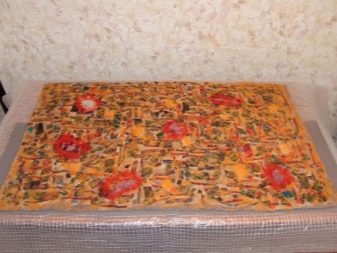 - Aleshores, la futura manta s’ha d’enderrocar amb una màquina especial o utilitzar manualment agulles. Aquest és un treball força acurador, de manera que sovint es fan panells petits en aquesta tecnologia. Els productes resultants semblen molt elegants i exclusius, poden decorar una bossa de mà, penjar-se a la paret com a imatge o cosir-los a un llençol.