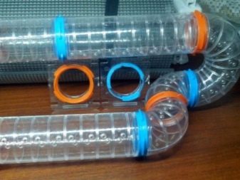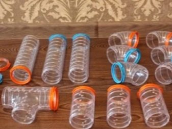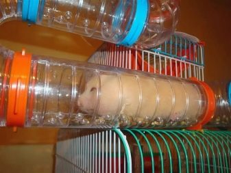 Els artesans construeixen túnels i laberints fins i tot a partir d’ampolles de plàstic. Tot i això, aquest material té un inconvenient important: és molt relliscós. Les urpes dels rosegadors no es poden enganxar a una superfície de plàstic, de manera que és millor combinar ampolles amb una base de cartró o contraplacat.Les ampolles es poden tallar per la meitat i fixar-les en una superfície més rugosa. Si no es pretén un visó a diversos nivells, es poden connectar de forma fiable les ampolles mitjançant cinta adhesiva. Un dels avantatges indiscutibles d’un tal laberint és la transparència.