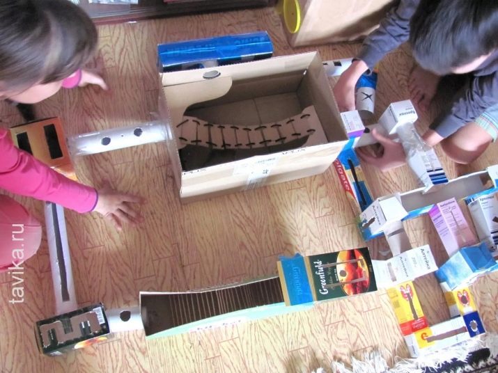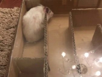 La caixa més gran pot convertir-se en la base del laberint. A la seva superfície interior, podeu dibuixar un pla. Els murs laterals es convertiran en els seus murs. Es fan diferents tipus de particions a partir del material de caixes més petites; en elles, a nivell diferent, però accessibles al nivell dels animals, s’han de disposar passatges en forma de forats rodons. A dins de les "habitacions" separades es poden disposar diverses escales, cubs, càmeres sense sortida.