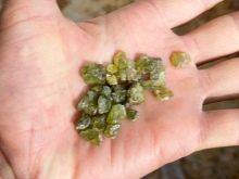La mineria de crisolita, realitzada en roques volcàniques, ens permet parlar de la influència dels processos magmàtics en la seva formació. Sorprenentment, aquest mineral també es pot trobar fora de la Terra. Les seves traces es van trobar repetidament en mostres de roca lunar i en fragments de meteorits. Però la mida de les pepites, fins i tot en termes terrenals, no és massa gran.