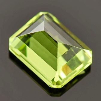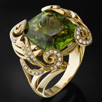 El crisolita té un aspecte molt decoratiu per la seva característica principal: índex de refracció lleuger, força elevat. Mineral ornamental, la descripció del qual sempre fa que vulgueu veure-ho amb els vostres propis ulls, quan es tallen correctament, resulta ser un afegit molt eficaç als productes fets de metalls preciosos.