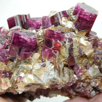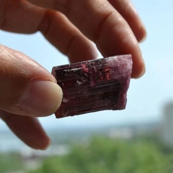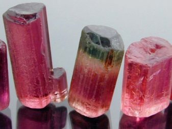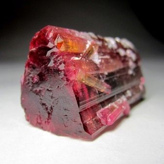 - Una variació d'aquest mineral és el rubellite rosa o la turmalina birmània. Es caracteritza per reflexions de granat i tonalitats de vermell fosc. És portada des de Birmània, on és extreta. El mineral augmenta el to, neteja els vasos sanguinis.Ajuda a aturar les dolències cròniques, augmenta el nivell d’immunitat.