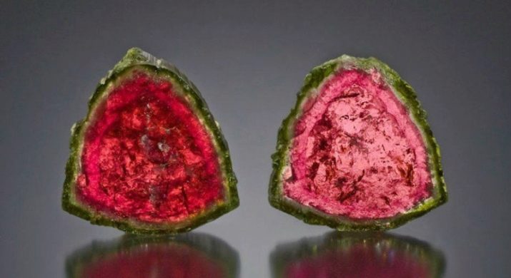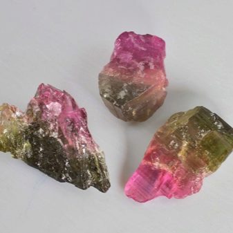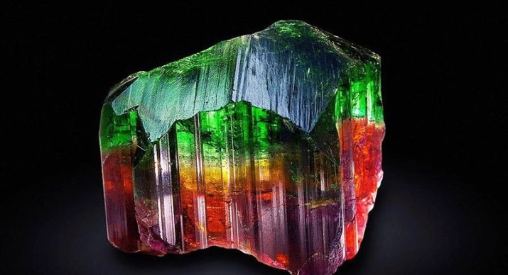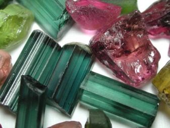 - Coloració de minerals policromats (Elbaites) representa un autèntic arc de Sant Martí en què els colors es substitueixen els uns als altres, creant un patró estrany. Els joiers l’utilitzen per fer joies que creen la il·lusió d’un arc de Sant Martí. Les pedres tenen diverses varietats, una de les quals (el "cap del turc") té un tall lleuger i un nucli vermell. L’altra (“el cap del moro”) té un centre marró fosc o negre, emmarcat per un color més clar. Aquestes turmalines t’ajuden a conèixer-te.