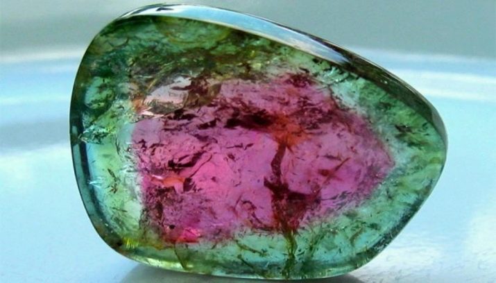 - Una de les varietats de pedra valuosa és la policromia, anomenada síndria. El mineral és realment similar a una síndria: una pell de color verd fosc cobreix la carn vermella madura, arribant al nucli groc de la pedra. El mineral enforteix el sistema nerviós i ajuda amb la comunicació.