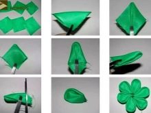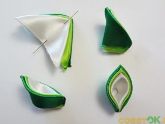 Els pètals estan fets amb teixit setinat, dels quals les flors són la base de la tècnica de decoració oriental. Els experts han desenvolupat diverses opcions originals per plegar cintes per obtenir una decoració bonica. En la majoria dels casos, les cintes quadrades s’enrotllen.Es pot variar el color i l’ombra del material tèxtil. Podeu fer servir colors múltiples i simples. Tampoc hi ha restriccions de mida, el principal és que és convenient treballar amb el teixit.