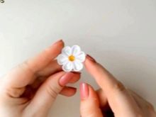 - Recollim la flor dels pètals, amb els extrems afilats al mig, i els colem. Decorem el mig amb pedres de pedres o perles. També es poden fer servir botons i altres elements decoratius.