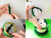 Vegeu com fer un ou de Pasqua amb les vostres pròpies mans mitjançant la tècnica de kanzashi al vídeo.