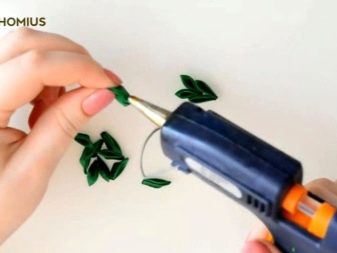 - De les parts verdes amb extrems més nítids recollim una branqueta. El resultat hauria de ser un element que sembli un puntet. Per crear una branca, necessiteu 15 fulles.