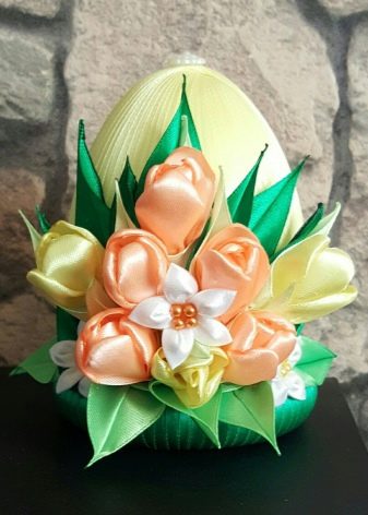 Nota: la tècnica, que descriurem amb més detall a continuació, es pot utilitzar per decorar no només els ous de Pasqua, sinó també altres objectes. Després d'haver dominat el kanzashi, podeu fer brots, decorar pintes, diadema i altres accessoris.