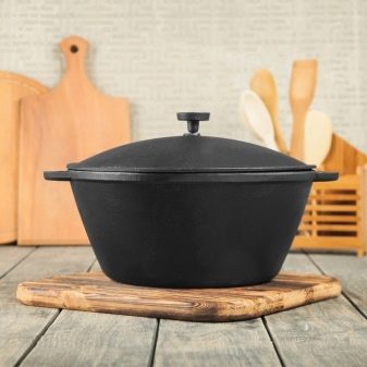 S’ha de prestar especial atenció a una varietat com Kazan-wok. Aquest element substitueix amb èxit el wok, el calderó, la cassola i la cassola. A causa de les seves propietats especials, és possible guisar, fregir, cuinar, fer foc lent, saltejar qualsevol producte en un recipient. El fons del coliflor és petit, però presenta parets altes que proporcionen una preparació còmoda de plats líquids i semi-líquids. Els mànecs de la majoria de models estan fets de bakelita, de manera que no s’escalfen i no es llisquen de les mans.
