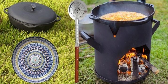 Probablement, un calderó es compri amb l'expectativa de sortir a l'aire lliure, cosa que significa que el comprador necessitarà altres accessoris per cuinar. Per tant, és important no oblidar-se de comprar una planxa separada. S’ha d’utilitzar exclusivament per a un pícnic. Al mateix temps, per tallar carn crua, aquest hauria de ser un producte independent.