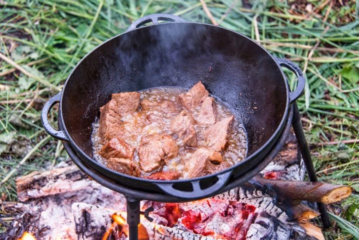 - En el ferro colat, es preparen plats d’alta qualitat que requereixen llargues llums sobre un foc. És en un recipient que s'obté borsch ric, aromàtics en pilars i rostit de carn.