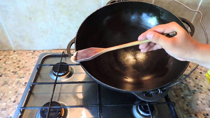 Primer s’ha d’abocar oli o greix al recipient, posar-se al foc i calcinar fortament. Tan aviat com el fons estigui cobert amb una tonalitat vermellosa, heu de posar uns espitons estrets i girar amb cura el caliu pels seus costats de manera que també es calcin les parets.