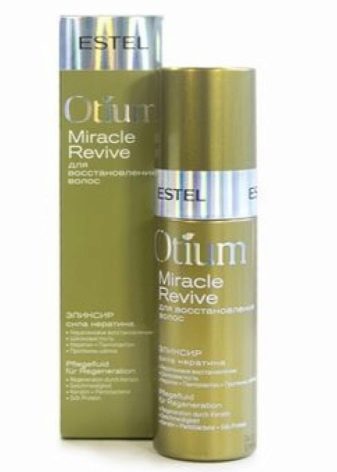 Producte d’atenció professional Estel Otium Miracle Revive Elixir “Força queratina” penetra profundament a l’estructura del fil, restaurant-lo, hidratant-lo i nodrint-lo. Apte per a rínxols cansats i danyats. L’acció es deu als components actius: queratina, proteïna de la seda, vitamina E, pantolactona.
