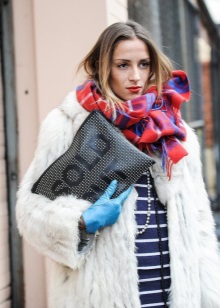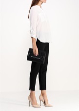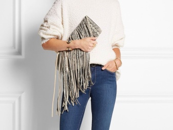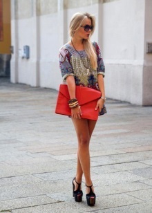 - Les sabates i l’embragatge no han de ser del mateix color. Qualsevol combinació està permesa no només en color, sinó també en textura. Per exemple, una bossa petita de cuir llis amb sabates de camussa té un aspecte sofisticat;