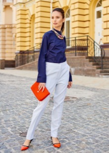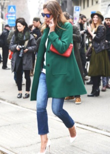 Casual elegant per a tots els dies: texans, mocadors, una brusa, una jaqueta i un sobre d'embragatge. En aquest vestit, podeu anar a l'escola, passejar per la ciutat, anar amb els amics a una cafeteria.