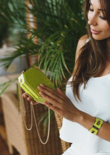 No totes les noies decidiran sobre un embragatge verd. Aquest és un accessori lluminós que destaca la individualitat, molt atrevit i enganxós.