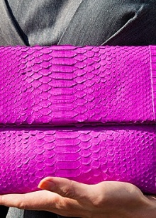 - De pells de pell de pitó són elegants i elegants. Un patró peculiar a la pell decorarà qualsevol imatge, afegint-li un toc elegant.