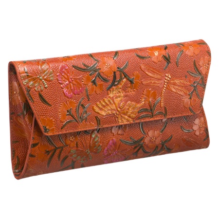 - Els clutches s’assemblen a peces fetes a l’estil patchwork a partir de peces de cuir. Interessant i inusual, pot combinar peces de diferents tipus de textura de la pell o de diferents colors.