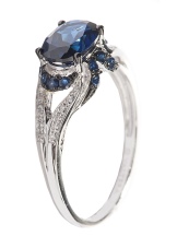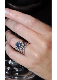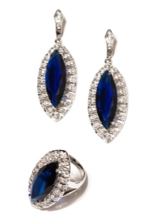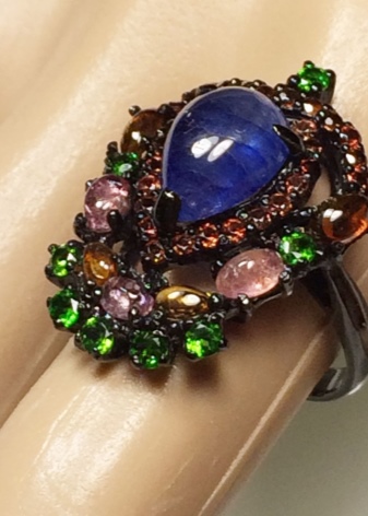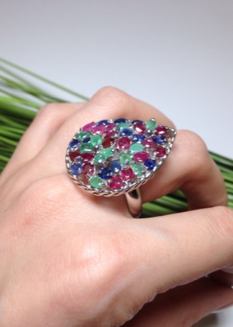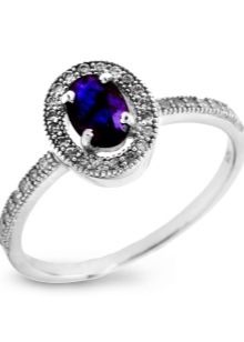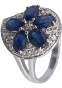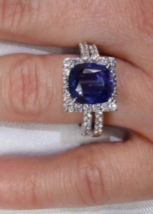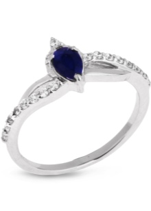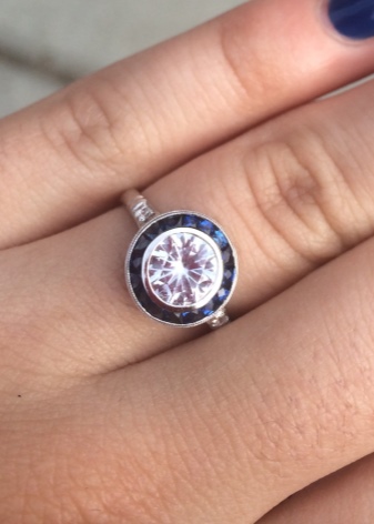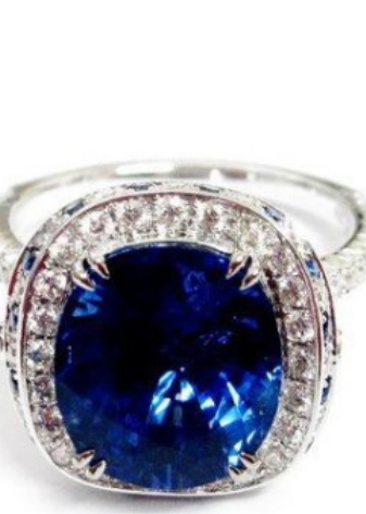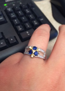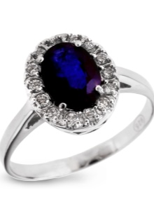 D'altra banda, el producte es pot decorar de forma addicional amb diamants, cosa que només millora el seu brillantor. L’or blanc és un material popular no només per al blau, sinó també per als safirs verds, rosats i negres.