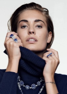 Però si aneu a una festa, a un teatre o a un restaurant, no està absolutament prohibit portar anells massius, arracades o un collaret. Els productes de safir es combinen idealment amb vestits llargs i curts de nit.