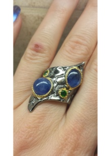 El safir i l'esmeralda també funcionen bé. El verd i el blau junts crearan una gamma tranquil·la i delicada que lluirà bonica en or i plata. Podeu triar un anell discret, on el còdol blau estarà emmarcat per petites maragdes intercalades. Els anells de dit tenen un aspecte més sòlid, on les dues pedres són grans.