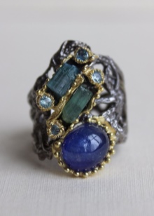 Hi ha anells de disseny únics en forma de papallones i flors, interessantment decorades amb els dos tipus de pedres.