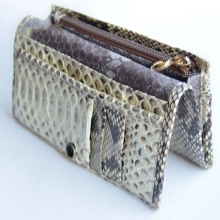 Juntament amb els productes pitons, també són populars les carteres de dona i d’home fetes amb pell de serp de mar, un rèptil verinós que viu al mar profund.