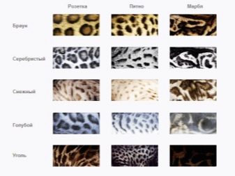 De la gran quantitat de tipus de colors, la naturalesa va donar a aquests petits depredadors salvatges només un "tabby tacat negre", i és ideal per a un camuflatge d'alta qualitat en plena naturalesa. En aquest cas, l’abric pot tenir colors que van des de sorra delicada i gris fins al castany més fosc, segons l’entorn dels gats. Al mateix temps, el procés d’hibridació va fer els seus propis canvis en la raça dels bengals i van aparèixer varietats molt interessants en els estàndards.