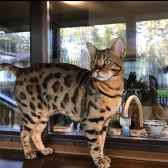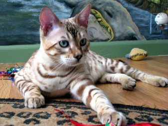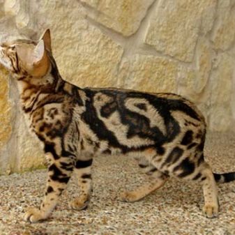 La principal diferència que té la raça moderna és un patró únic de lleopard, que ajuda a que el color dels animals sigui considerat únic. Els gats de Bengala van rebre aquesta peculiaritat dels seus avantpassats llunyans que vivien en estat salvatge. La llana dels representants d’aquesta raça té una bellesa molt bonica i fins i tot brillant, que es fa especialment visible a la llum del sol.