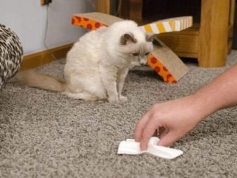 - Capsull Neutralizor Cat & Kitten. La composició s’encaixa bé no només amb l’eliminació de les taques, sinó també amb l’espant de l’animal del lloc. Cal ruixar el líquid sobre una superfície prèviament eixugar i esperar uns minuts, després netejar-la amb un tovalló. Les taques velles i difícils d’eliminar després de ruixar es cobreixen amb una pel·lícula durant un parell d’hores i només després es van eixugar.