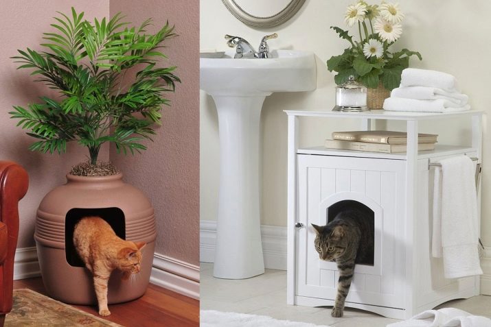 I també es pot posar la safata a la cantonada extrema del passadís, en algun lloc sota un armari alt o estanteries penjades. Si teniu un armari al passadís, el vàter del gat es pot equipar a la part inferior, després de fer un petit forat a la part inferior de l’armari per tal que l’animal s’hi pugui enfilar.