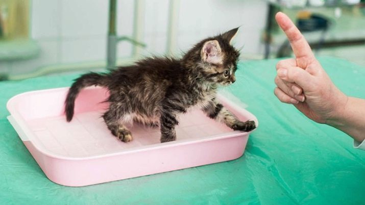 Si parlem d’un gatet, els propietaris no tenen motius per preocupar-se. Al cap i a la fi, el gatet que acaba de comprar i portar a casa està completament desorientat, és indefens i espantat, no sap on es troba el seu vàter i el seu recipient amb menjar i aigua. Al cap d'una estona, el nadó es posarà còmode i recordarà tots els llocs necessaris a la casa. Com a regla general, si porteu un animal al viver, no hi ha cap problema amb la safata: La gata materna i els criadors pre-ensenyen al nadó a utilitzar el vàter.