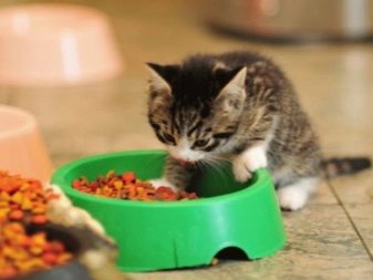 Com que les mascotes tenen un estómac petit, no poden sentir plenitud pels aliments. Per això, els mateixos gatets no entenen quant volen menjar. Els propietaris haurien de tenir-ho en compte i posar petites porcions de menjar sec quatre vegades al dia. Per als gatets que mengen menjar sec, sempre heu de deixar aigua neta.