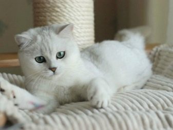 - Escocès. Sovint es confonen amb la raça britànica, els mateixos peluts gruixuts i curts, de color esmeralda, amb una vora negra. Podeu distingir-les per la forma de les orelles: les seves puntes són lleugerament inclinades cap endavant i cap avall. Segons els estàndards de cria fixats, les orelles no han d’anar més enllà dels límits dels contorns del cap. Les potes són més allargades i més proporcionals al cos de l’animal. El cap amb una pronunciada mandíbula inferior s’assembla a la forma d’un mussol. La cua és flexible, lleugerament allargada.