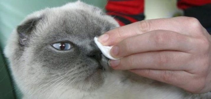 - Es renta els ulls de l'animal amb un cotó submergit en aigua bullida, en direcció cap a la cantonada exterior de l'ull fins al nas. El moviment ha de ser suau i suau.