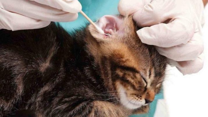 - Les orelles de l’animal es netegen amb rovells de cotó. Es processa la superfície interior de l’oïda. És impossible enfonsar-se al conducte auditiu durant el procediment.