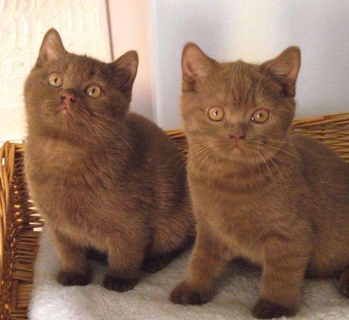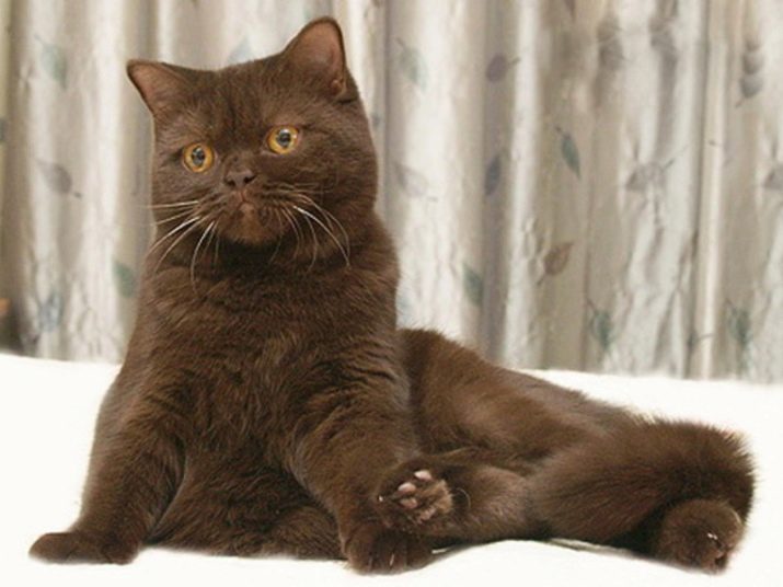 - Xocolata Aquest color no és gaire típic per als gats rectes escocesos, però és rar.Un abric marró d’una ombra profunda ha de ser necessàriament llis sense broncejat i altres transicions de colors característiques. Com més fosc sigui el to de xocolata, més noble es considera. Un color marró heretat genèticament suggereix la presència de bicolors o punts de color al pedigrí amb predomini del color del cafè saturat o canyella.