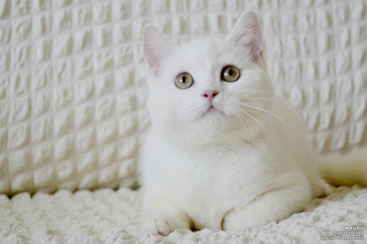 - Blanc Un gat de cor orelles escocès bell i inusual a la infància pot tenir taques d’un color diferent, però els animals adults haurien de tenir un color net sense impregnacions estranyes. Els ulls de coure o ambre s’harmonitzen amb una ombra de neu. Es permet una tonalitat diferent de l'iris. En aquest cas, un ull pot ser taronja i l’altre blau.