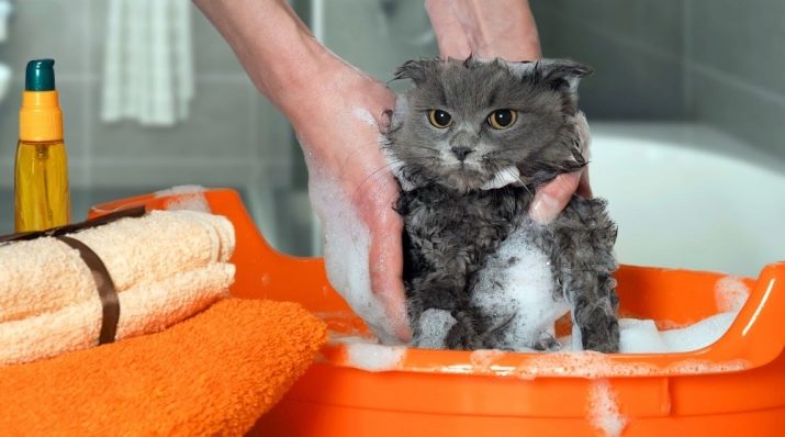 La principal regla de cura del gatet escocès: no es pot banyar sense necessitat especial. De vegades s’embruta molt o agafa puces mentre camina pel carrer. No es pot banyar un gatet si no té ni dos mesos (és millor protegir-lo de la contaminació si és possible). Si la natació és indispensable, s’aboca aigua tèbia a la conca (la temperatura òptima és de + 36 ° C). Rentar la vostra mascota amb l’addició d’un xampú especial.