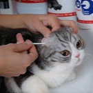Els ulls i les orelles dels gats escocesos necessiten una inspecció regular. Aquests animals solen tenir aurícules netes, però quan apareix una placa, s’elimina la contaminació amb un cotó. Al netejar les orelles, podeu utilitzar una loció especial.