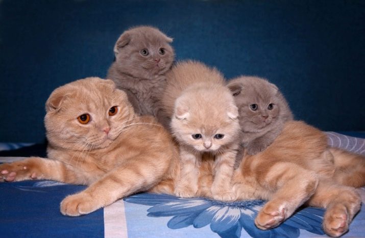 En la descendència dels escocesos, els signes es divideixen, en aquest cas neixen els gatets d’orella simple i d’orella dreta. La raça pot incloure gatets amb o sense trets mutants. Les gallines no tenen diferències especials entre si, a part de la forma de les orelles. Per evitar la deformació de l’esquelet de l’animal, val la pena creuar els representants erectes i amb les orelles altes de la raça. Els nadons amb oïda d'emmagatzematge poden ser simples, dobles, triples.