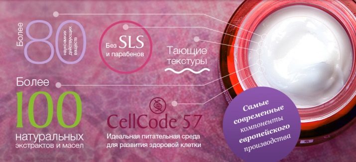 NL International ha desenvolupat un cosmètic veritablement únic: CellCode 57 està present en la composició: un codi cel·lular amb un grup d’elements (3 hidrats de carboni, 6 nucleòtids, 8 sals minerals, 19 vitamines, 21 aminoàcids) necessaris per al funcionament normal de les cèl·lules de la pell.