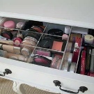 - Si els vostres cosmètics s’emmagatzemen en un calaix, compra separador especial i poseu-lo al seu interior. Així que poseu les coses en ordre per separat amb el rimel i el pintallavis.