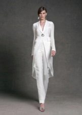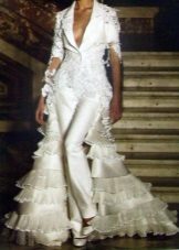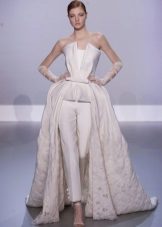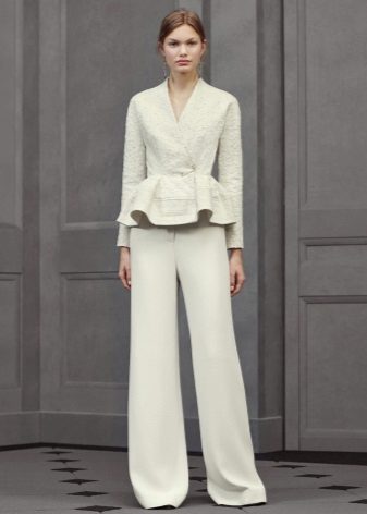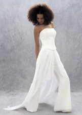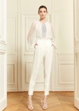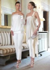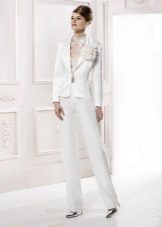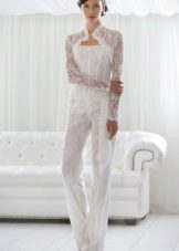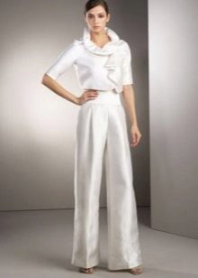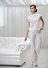Els pantalons són un detall bastant rar d’un aspecte de casament, però molt elegant i espectacular. Es tracta dels pantalons que ajudaran a emmascarar les imperfeccions de la figura. Els models ajustats en aquest cas no són del tot adequats. Per a un casament, són adequades opcions més clàssiques o solemnes.