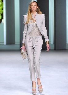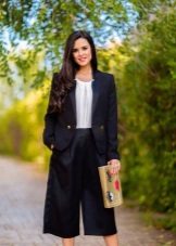 - un vestit amb pantalons abatuts del genoll i jaqueta o jaqueta ajustada.