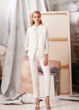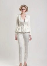 La jaqueta és part integrant de la disfressa del casament. S’ha de prestar especial atenció al retall de la núvia. Es pot centrar en un pit gran o cobrir-la de mida petita. Per a nenes primes, l'estil ajustat de la jaqueta és adequat. Si us convidaven a un casament, el vestit de pantaló pot ser una elecció ideal. En ell et sentiràs còmode i quedarà genial.