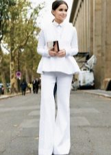 Podeu portar una camisa de seda o de gasa a la jaqueta. Un mocador de coll ajudarà a completar la imatge. De les sabates, tria models en un estilet o en una plataforma.